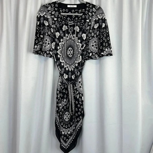 Robert Graham Flutter Sleeve Print Handkerchief Hem Silk Dress Size Small