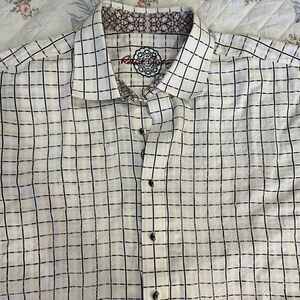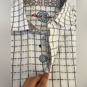 Robert Graham Full Chest Embroidery White Black Check Button Down size XXXL 3XL