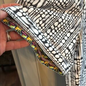 Robert Graham has skin in the game, literally, with this reptile-like vertical pattern. Pick stitch dupioni trim inside the short sleeve cuffs.
