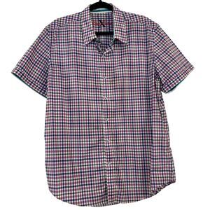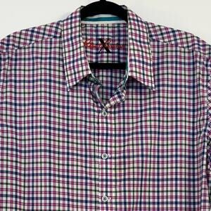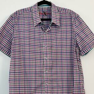Robert Graham Gingham Short Sleeve Shirt Button-Down Cotton | Men's Size XL