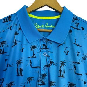 Robert Graham Golf Polo Shirt Men XXL Blue Wicking UV Performance Palm Golf Cart