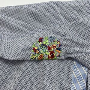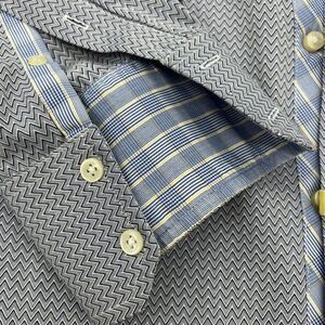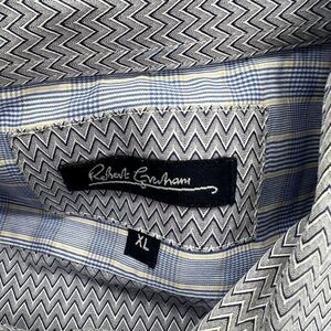 Robert Graham Gray Herringbone Print Plaid Flip Cuff L/S XL.