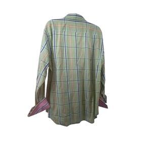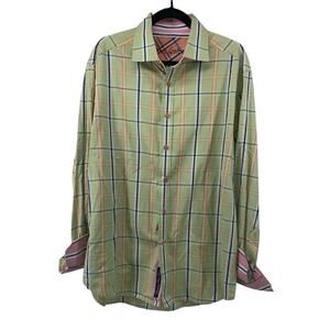Robert Graham Green Blue Orange Cotton Plaid Button Up Shirt XL