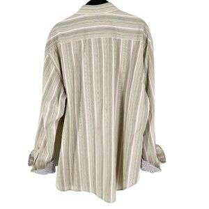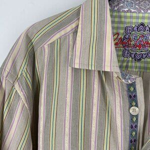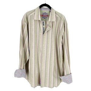 Robert Graham Green Purple Strip Contrast Cuff Button Up Collared Shirt Men's XL