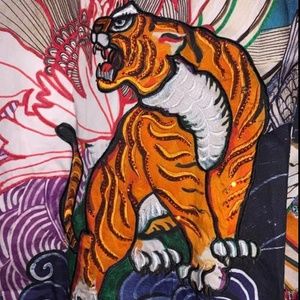 Embroidered tiger with crystal chips oulined.