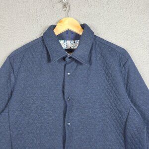 Robert Graham Knit Shirt Jacket Mens Large Navy Tailored Fit Quilted Jackdaw BD