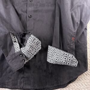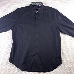 Robert Graham Knowledge Wisdom Truth Men Black Textured Button Up Shirt Sz XL