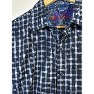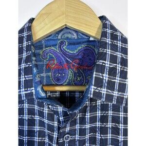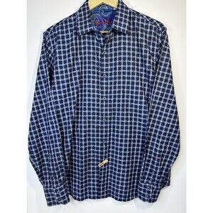 Robert Graham LS Button Shirt Slim Fit L Navy Blue And Paisley Contrasting Cuff