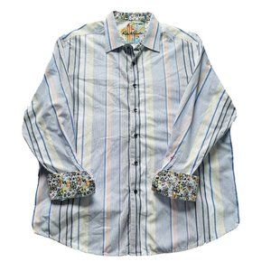 Robert Graham LS Button Up Shirt Striped Floral Cuffs Classic Fit XXXL 3XL Men