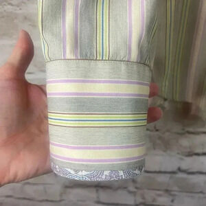 Men's Robert Graham Shirt Size Large. Green, Lavender & Blue Multicolor Striped Long Sleeve Button Down made of 100% Cotton. Gently used, please see pictures for details.
