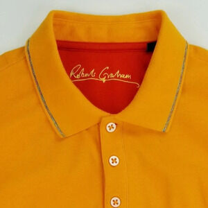 Robert Graham Large Men's Orange Embroidered Button Hem Short Sleeve Cotton Polo