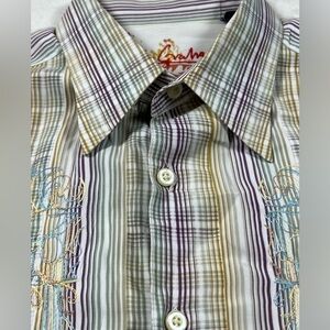 Robert Graham Large Pointed Collar Embroidered Multicolor Club Vacation Shirt