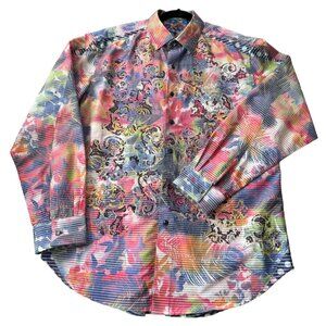 Robert Graham Limited Edition Crystal Buttons Pastel Floral RARE Shirt Men's Large
