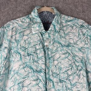 Robert Graham Linen Blend Shirt Mens XL Blue Flip Cuff Abstract Vibrant SS