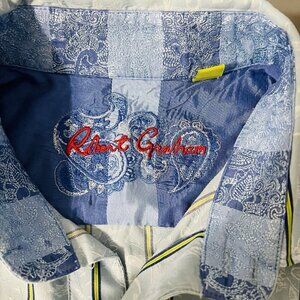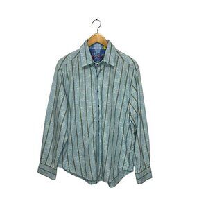 Robert Graham Long Sleeve Button Down Front Shirt Blue Size L Flip Cuffs
