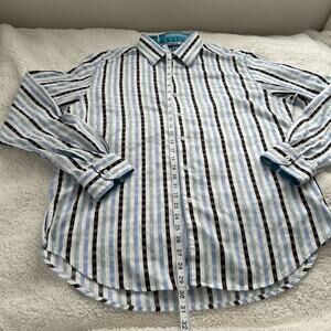Robert Graham Long Sleeve Button Up Shirt Men's XLarge Blue White Striped