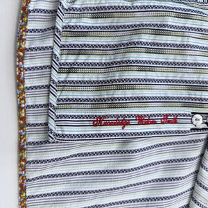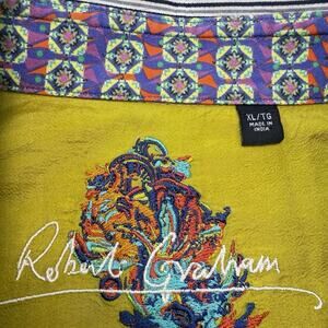 Robert Graham Long Sleeve Shirt Mens XL Textured Striped Blue Green Flip Cuff