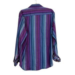 Robert Graham Long Sleeve Shirt Striped Button-Up Tailored Fit Purple Size XL