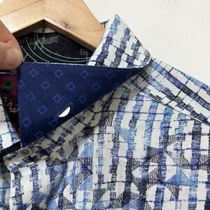Robert Graham Maitai Button Up Shirt Size 2XL Blue Tiki Embroidered Flip Cuffs