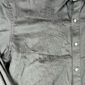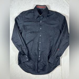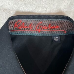 Robert Graham Medium Black Embroidered Detail Barrel Cuff Classic Button Shirt