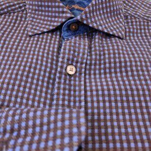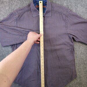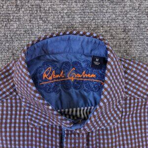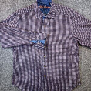 Robert Graham Medium Button Up Shirt Blue Plaid Long Sleeve Brown Purple Blue