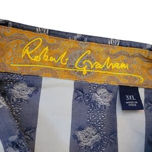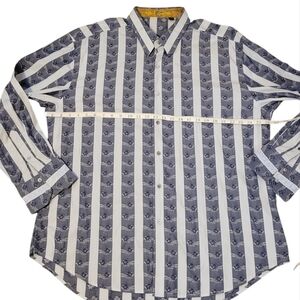 Robert Graham Men 3XL Flip Cuff Button Up Long Sleeve Shirt Stripes Roses Pearl