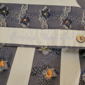 "Knowledge Wisdom Truth" Embroidered on hem.