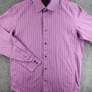 Robert Graham Men Designer Button Up Shirt Men Striped Purple Size 16