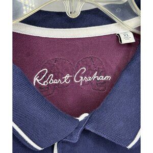 Robert Graham Men XL Short Sleeve Navy Blue Polo Shirt Classic Fit Tipped Collar