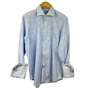 Robert Graham Mens 16 Light Blue Paisley Flip Cuff Dress Shirt Button Down M/L