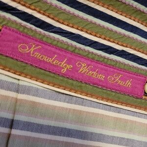 "Knowledge Wisdom Truth" Embroidered on hem.