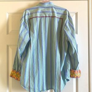 Robert Graham Men’s 2XL Flip Cuff dress Shirt Colorful striped Floral Party