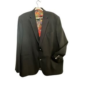 Robert Graham Men's Black Long Sleeve Wool Blend Patterned Lining Blazer Size 48
