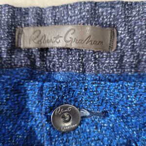 HAS LOOKS LIKE A BURN SPOT CHECK PHOTO Elevate your casual style with these Robert Graham men's board shorts. The drawstring waist and slash pockets provide both comfort and functionality, while the solid blue color and flat front design give them a classic look. Perfect for all seasons, these shorts are made from a comfortable and durable fabric blend of 92% polyester and 8% spandex. With a regular fit and mid-rise, these shorts are suitable for any occasion, from a casual day out to a beach vacation. They are machine washable and easy to care for, making them a practical addition to any wardrobe. Don't miss out on the chance to own these stylish and versatile shorts from Robert Graham.