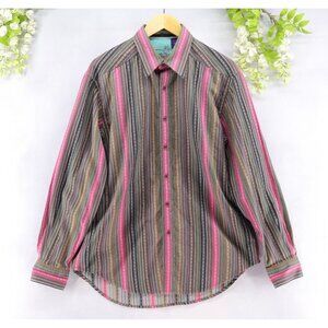 Robert Graham Men’s Button Up Long Sleeve Shirt Multicolor Striped Flip Cuffs L
