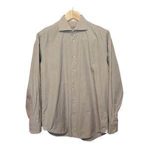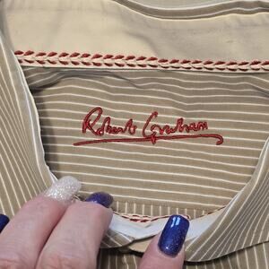 Robert Graham Mens Button Up Shirt 41 16 L Silver/Gray White Stripe Flip Cuff