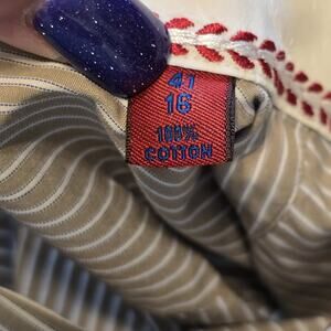 Robert Graham Mens Button Up Shirt 41 16 Silver/Gray White Stripe Flip Cuff