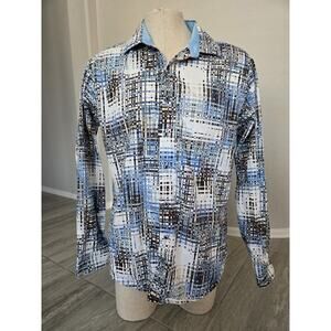Robert Graham Men's Cape Sim Modern Geometric White Blue Long Sleeve Shirt Sz XL