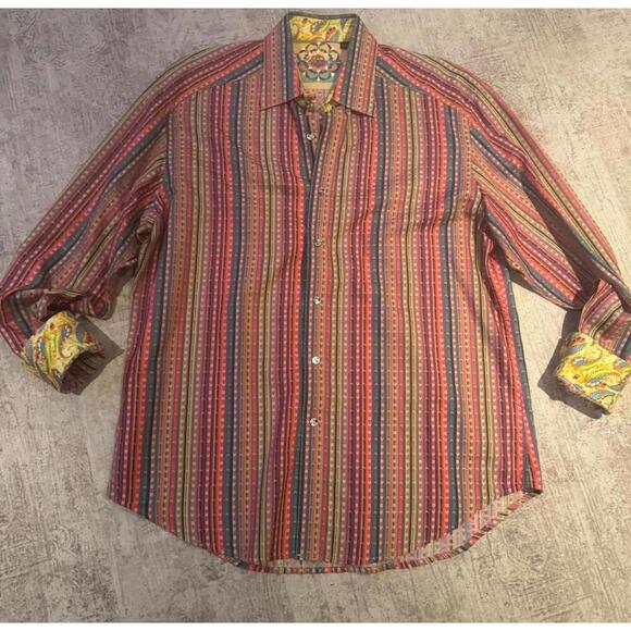 Robert Graham Men's Casual Button-Up Shirt - Striped Pattern, Size XL