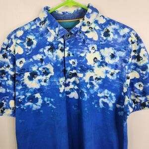 Robert Graham Mens Classic Fit Short Sleeve Floral Print Polo Shirt Medium