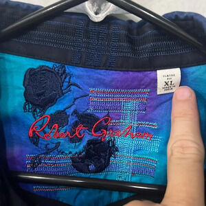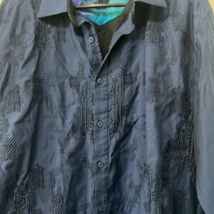 Robert Graham Mens Embroidered Button Down Navy Blue Black 100% Cotton Size XL