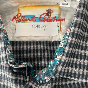 Robert Graham Mens Houndstooth Dress Shirt With Floral Trim Size M
