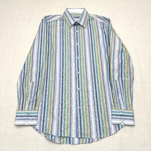 Robert Graham Men’s Large 42 16 1/2 Blue Striped Flip Cuff Shirt