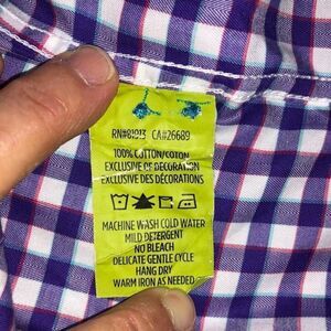 The shirt features long sleeves with flip cuffs, embroidered logos, and accents, adding to its classic and designer theme. It is machine washable and does not require special garment care. The shirt is size L and is perfect for men who prefer a regular fit. This shirt is a part of the Robert Graham product line and is not handmade or vintage.