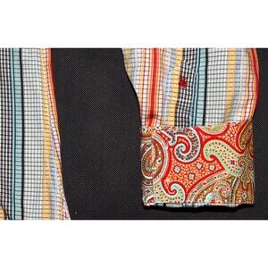 The Robert Graham Men's Long Sleeve Button Front Paisley Flip Cuff Shirt in size Large is a stylish and versatile addition to any man's wardrobe. Made from cotton, this multicolor shirt features a paisley pattern, collared neckline, and button closure for a classic button-up style. The regular fit and long sleeves make it suitable for casual occasions, while the brand's reputation for quality and attention to detail ensures a premium product. Perfect for men looking for a unique and fashionable shirt that can be dressed up or down for various events.