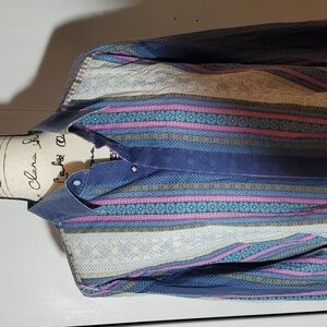 Robert Graham- Mens Multi-Color Stripes/ Floral /Silk flipped cuff Shirt Sz.2X