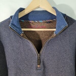 Robert Graham Mens Pullover Waffle Knit Sweater SZ L Blue 1/4 Zip Cotton Rainbow