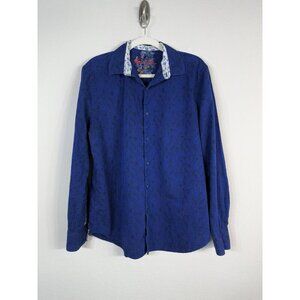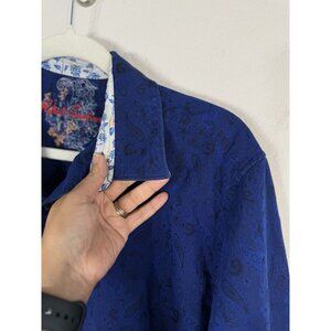 Robert Graham Men’s Royal Blue Paisley Print Classic Fit Button Up Shirt Size XL