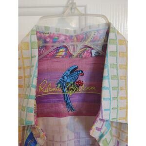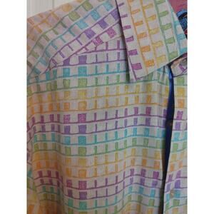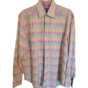 Robert Graham Men's Shirt Button Up Multicolor Geometric Medium Linen Cotton