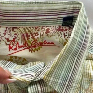 Robert Graham Mens Shirt Large Multicolored Stripes Embroidered 100% Cotton